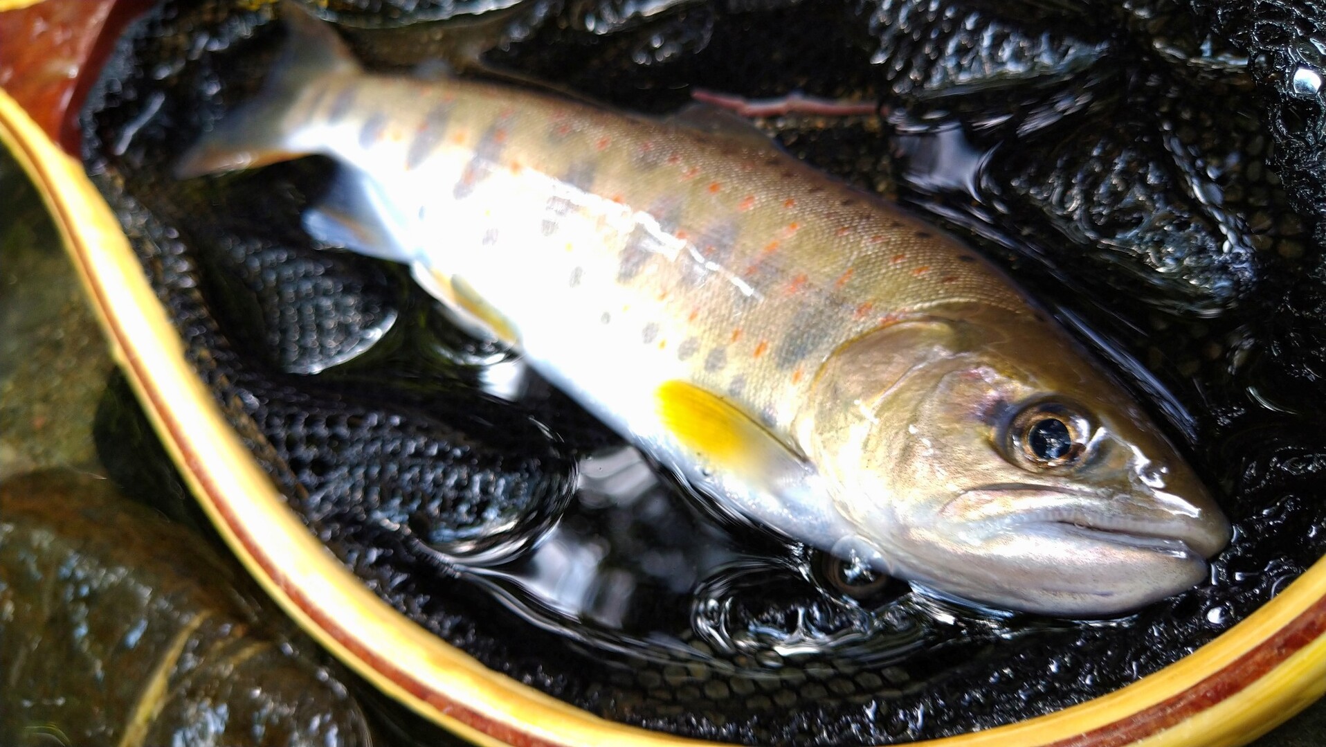 骨と頭まで食べちゃいましょう。川魚は骨が細くて柔らかいので一手間でカリッカリのおつまみになります。 どうするのか。 ひたすらに炙ります。 網の上で骨をじっくり弱火で炙っていると、シューシューと骨から水分が出ていきます。 パーティの日の昼に友人がアマゴを食べに行こうというので連れて行ってもらいました。 囲炉裏に炭を入れてもらってアマゴの塩焼きを焼いている間に、まずはイワナのお造りから。 小さめのアマゴが一匹まるごと入った釜飯です。頭と尻尾を取って 旬のアマゴをおいしく頂く 熱心なFlyfishermanには叱られるかもしれませんが、4月〜5月のコンディションの良いアマゴは、時々頂いています。 言うまでもなく、 この時期のアマゴは極めて美味 だからです。 この時期のアマゴはやはり 塩焼き で頂きたい